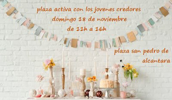 ¡¡Buenas noticias!! La plaza San Pedro Alcántara (popularmente conocida por muchos como ‘la plaza de la mierda) vuelve a ser núcleo del handmade, la artesanía y los jóvenes diseñadores después de un laaaaargo paréntesis. Porque este domingo, 18 de noviembre, el colectivo Plaza Activa vuelve a tomar esta plaza para celebrar una muestra de artesanía local, más o menos del estilo de lo que hasta ahora venían haciendo las chicas de Creactiva Málaga, de las que ya hemos hablado en varias ocasiones en este blog.