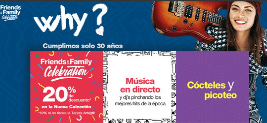 Las celebraciones serán este viernes y el sábado y tomad nota de todo lo que vamos a poder encontrar: 20% en la nueva colección (que lleva por nombre Why? y que rinde homenaje a los años 80), música en directo con y Djs pinchando, cócteles y 50 puntos extra en tu Tarjeta Amig@ solo por asistir. Por cierto que si no tienes esta tarjeta (que es gratuita) la rebaja será del 10%.