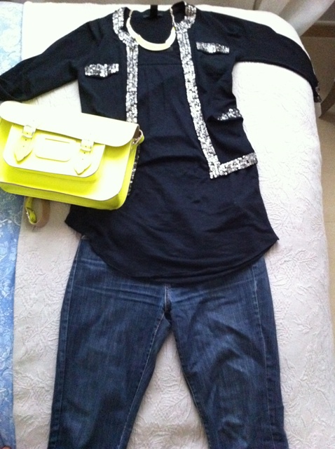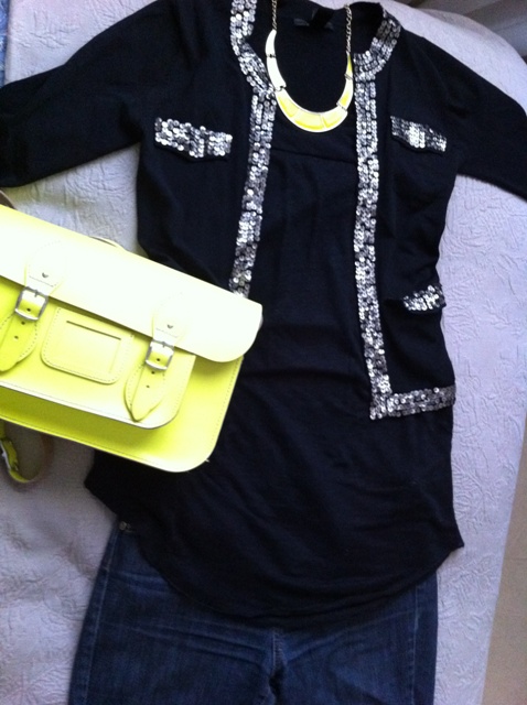 LOOK 3: CAMISETA NEGRA+REBECA DE PAILLETES+VAQUEROS+COLLAR FLÚOR