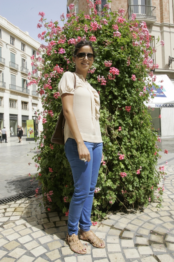 ¡Hola a todas! Qué rápido pasan lo días! ¡Ya estamos en el ecuador de la semana! Y seguimos fichando los ‘look de la calle. El protagonista de hoy es nada menos que un burro. ¡Sí, un burro! ¡No me he vuelto loca! (aunque me queda poco, jeje). Ayer mismo os comenté que me encanta la colección de complementos de esta temporada de Bimba y Lola, ¿os acordáis? Pues hoy lo ratifico. El protagonista del estilismo que nos propone Gema García es un divertidísimo anillo con la silueta de un adorable burrito en dorado que pone el punto original al ‘outfit’ de esta joven estudiante de ADE. Ella misma lo reconoce: “Suelo vestir con prendas básicas, pero intento destacar con los complementos buscando piezas diferentes”, señala. En esta ocasión lo consigue con el anillo y con una pulsera dorada de púas super rockera que combina con un maxi reloj en el mismo acabado y con unas sandalias también con púas que ponen el contrapunto al ‘look lady’ de la camisa en tono maquillaje. Completan su estilismo unos vaqueros entubados en azulón y un bolso mochila que está de última esta primavera (me gustan porque son hiper cómodos). Os dejo con Gema!