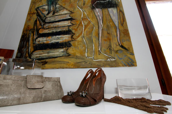 Como opción para un evento especial, De la Rosa se queda con el vestido de crepe rojo -«adoro este color por la fuerza que transmite», dice- con abrigo a juego que le hizo y le regaló su amigo Mario Camino de Montesco para ir de madrina en la boda de su hijo. «Quería algo sencillo y elegante y acertó». Remató el estilismo con un espectacular tocado rojo de Laura Olea y tacones topo. Aunque admite que le encantan los taconazos matiza que para diario se queda con zapatos planos, «con los que también se puede ir muy sexy», advierte. ¿Su elección? Unas bailarinas rosa palo con aplique hechos a mano por la malagueña Eva de Madariaga. Y es que a esta creativa le pierden las prendas personalizadas y los tesoros que dice encontrar en negocios locales como Fabric o La Habitación de Kate, «prefiero comprarles a ellos porque estoy hasta la coronilla de las franquicias», alega. ¿Su último hallazgo? Un camisón blanco bordado a mano por unas paradas malagueñas que hacen ajuares personalizados con poemas bordados, “una magnífica idea para regalar”, sugiere. ¿Queréis bucear en su armario? ¡SUR os abre sus puertas! Seguid leyendo!