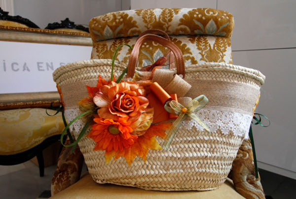 Zapatos y cesta de mimbre diseñados por la artesana malagueña Eva de Madariaga. Nos gustan las manoletinas rosa palo con aplicaciones en fucsia y las sandalias con detalle de cristales vintage. Se venden por Facebook y en las boutiques Strava (en Echevarría de El Palo) y Opalo (en calle Cister). La cesta con flores naranjas, lazo de rafia y encajes es ideal para el verano. “Me gusta porque esn muy versátil”, destaca Aurora.