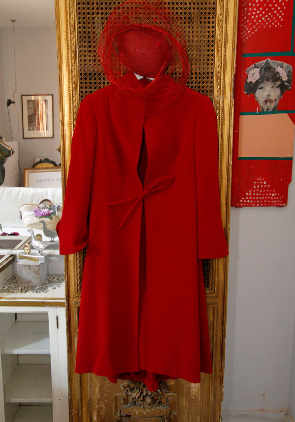 Para un evento especial, la creativa nos selecciona este modelo de su amigo Mario Camino de Montesco en crepe rojo que se puso para ir de madrina a la boda de su hijo. “No quería ir de largo porque no va conmigo así que le pedí algo sencillo y elegante y acertó. Fue su regalo de boda y le estoy inmensamente agradecida”, destaca. Lo combinó con tacones marrones con maxi pedrusco de cristal, clutch de print animal y guantes calados vintage, “eran blancos y el propio Mario me los tiñó del mismo color que los tacones”, señala.
