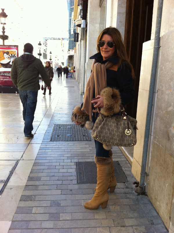¡Feliz lunes a todos! Comenzamos una nueva semana en la que las bajas temperaturas siguen acompañándonos. Así que como en este blog manda la moda de la calle y en la calle lo que hay es muuuuuucho abrigo, pues eso…continuamos con los looks más fashion a la par que calentitos, que es lo que domina el street style malagueño. Nuestra modelo espontánea de hoy es Sara López, una empresaria de 43 años apasionada de la moda. Su receta contra el frío pasa por recurrir al pelo, que se impone en las terminaciones tanto de su chaqueta (en los puños, un acabado que queda super estiloso) como en sus botas. Remata el estilismo con jeans de Pinsapo entubados, bolso de Michael Kors y bufanda con pompones, ¡también de pelo! ¡Os dejo con ella! ¡Hasta mañana!