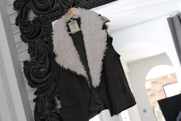 Este chaleco de piel y solapas de borrego, adquirido en Pull&Bear se ha convertido en una de las piezas más recurrentes de sus outfits esta última temporada. “Me lo suelo poner con vaqueros o pantalone spitillo y una chaqueta militar vintage debajo”, nos explicó.