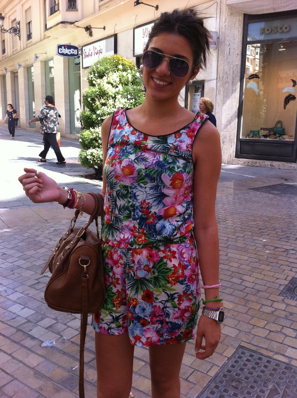 ¡Feliz miércoles! Disculpad la ausencia de ayer pero tengo una semana complicada e imposible actualizar a diario. Hoy os traigo un look fresco, juvenil y, sobre todo, cómodo y como lo define su autora “fresquito”. Ideal para afrontar una jornada de tiendas de probador en probador. Nuestra protagonista, Tamara López, apuesta por un mono en versión corta y con el estampado estrella de la primavera: las flores. Como ya apuntamos desde este espacio, los monos vuelven a ser tendencia esta temporada (se llevan mucho los vaqueros que nos trasladan a nuestra infancia). Personalmente me gustan porque solucionan de un plumazo el outfit y en mi caso me parecen ideales para pasar una jornada con niños. El print floral del de Tamara, toda una explosión de color, nos traslada solo con mirarlo a exóticas islas tropicales. Os dejo con el look de esta joven estudiante de Filología de 20 años a la que invitamos a pasear por nuestra pasarela urbana el pasado martes durante la sesión de fotos por calle Larios. Y, vosotras, ¿tenéis mono!