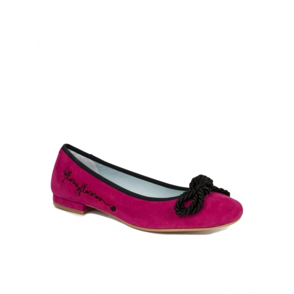 Bailarinas de ante fucsia con grossgrain y doble cordón de pasamanería en negro. De flores y floreros.