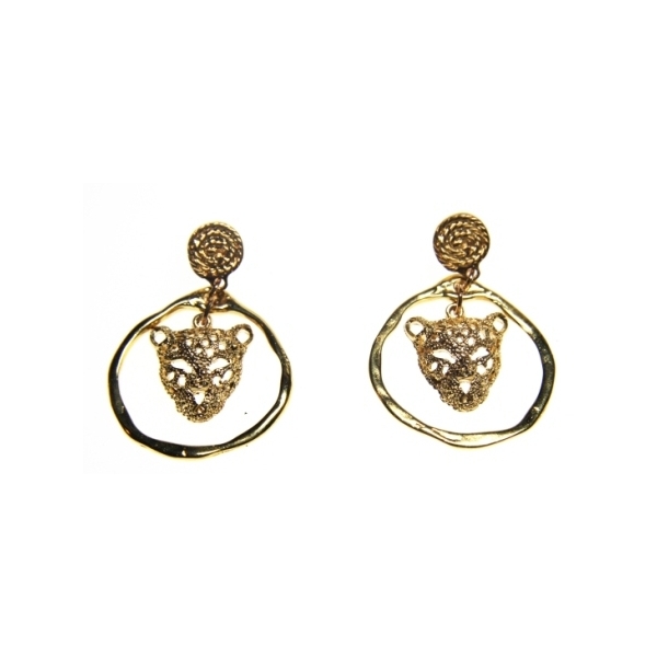 Pendientes de aro muy originales con cabeza de tigre en la parte central bañados en oro.