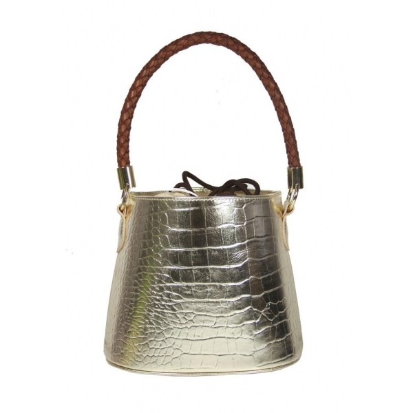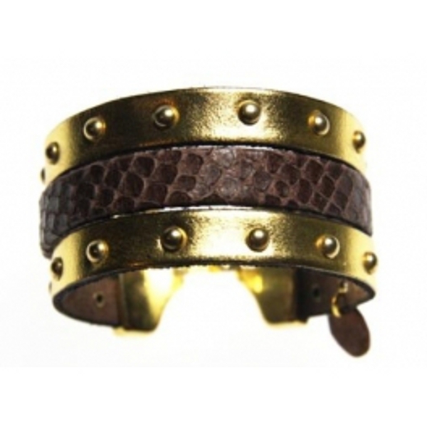 Pulsera de cuero con bandas laterales de cuero tintado en oro con remaches, de Wappo.