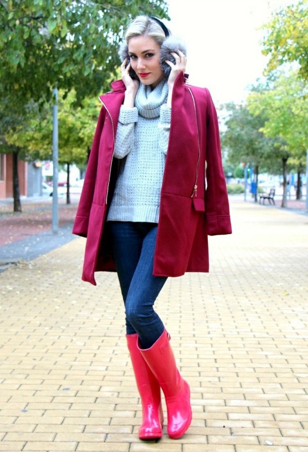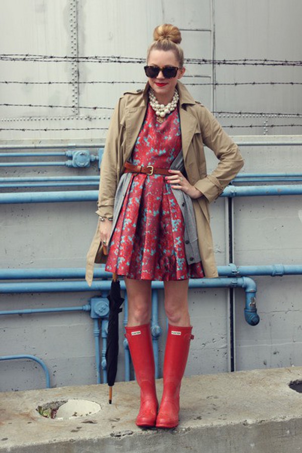 ¿Por qué limitar las botas de agua a looks más deportivos? ¡Me encanta como quedan con un vestidito lady, collar XL y gabardina. ¡Ideal!