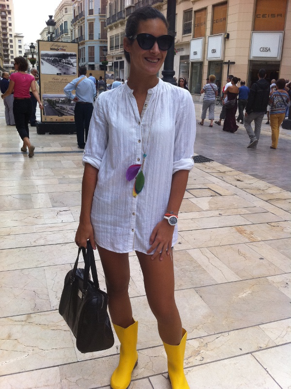 …¡la Virgen del la Cueva, los pajaritos cantan, las nubes se levantan! Que alce la mano a la que al leer el título del post de hoy no se le haya instalado la pegadiza cancioncita popular en la cabeza. ¡Es inevitable, jejejje! Día de chubascos en Málaga. ¡Por fin podemos sacar las botas de agua! ¡Yujuuuuuuuuu! A muchas personas le horrorizan estos días grises pero a mi, qué queréis que os diga -llamadme rara- pero de vez en cuando hasta me apetecen. Y una de las razones es poder calzarme mis preciosos botines para la lluvia de Bimba y Lola -regalazo de cumple de mi querida amiga Laurita- y saltar en los charcos con mi hijo (¡a él también le encanta que le ponga las suyas, va feliz a la guarde jejeje!). Según la previsión de la Agencia Estatal de Meteorología (Aemet) las precipitaciones nos acompañarán hasta el próximo domingo, ¡así que tenemos tres días para inventar estilismos con botas de agua! Buscando inspiración en la blogsfera me he encontrado con propuestas súper interesantes. Es cuestión de abrir el armario y divertirse un poco. Y recordad: la que no arriesga no gana, ¡echadle imaginación! Os dejo con algunos ‘outfits’ que me han conquistado, de esos que me apunto para copiar, y con algunos de los estilismos que han desfilado por esta pasarela urbana en los últimos meses. Como veréis, las hunter son las preferidas de las fashionistas malagueñas (hay unas plata que me vuelven loca). Lo dicho, ¡a inspirarse! ¡Hasta mañana, os espero mientras tanto en Twitter: @almunogues!
