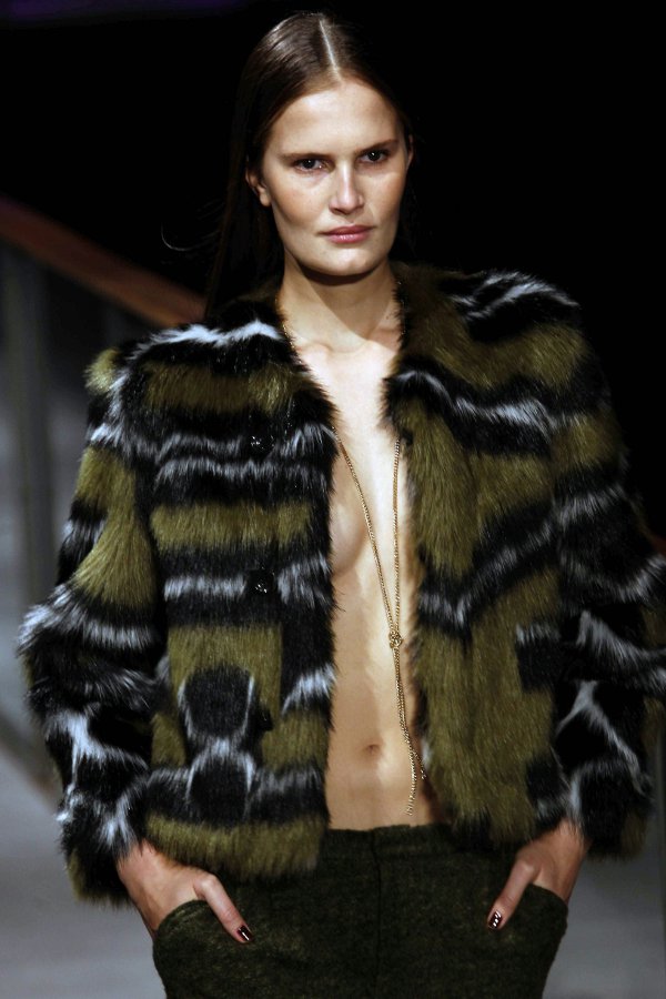 Sobre la pasarela, Custo dio de nuevo una lección de superposición de tejidos antagónicos. Entre sus propuestas, abrigos de pelo combinados con blusas vaporosas y transparencias. Tartán, animal ‘print’ y estampados geométricos fueron protagonistas en un desfile dominado por colores oscuros, con predominio del camel y el negro, en el que también hubo interesantes guiños al rosa flúor (lo que más me gustó