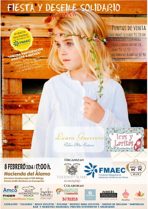 ¡Feliz viernes! Acabamos la semana con una cita solidaria que os animo a que marquéis en rojo en vuestra agenda, sobre todo si sois mamis. Será el próximo 8 de febrero en un escenario tan maravilloso como es la Hacienda del Álamo, un marco precioso donde siempre se agradece echar un ratito. Y la causa lo merece: el dinero que se recaude irá a parar a la Fundación Malagueña de Asistencia a Enfermos de Cáncer, una asociación que hace un trabajo ejemplar y que merece que todos los que podamos les echemos una mano para continuar con su excelente labor. Pues bien, la excusa para ayudar y pasar una buena tarde en la Hacienda del Álamo es igual de apetecible: un desfile de moda infantil en el que podremos ver sobre la pasarela (y digo podremos porque una servidora no piensa perdérselo) las nuevas colecciones de la diseñadora Laura Guerrero y de la firma malagueña ‘Icas y Laritas’ (de las hermanas Mónica y Lara Olivares – quien accedió hace meses a abrirme su armario, como podéis recordar aquí).