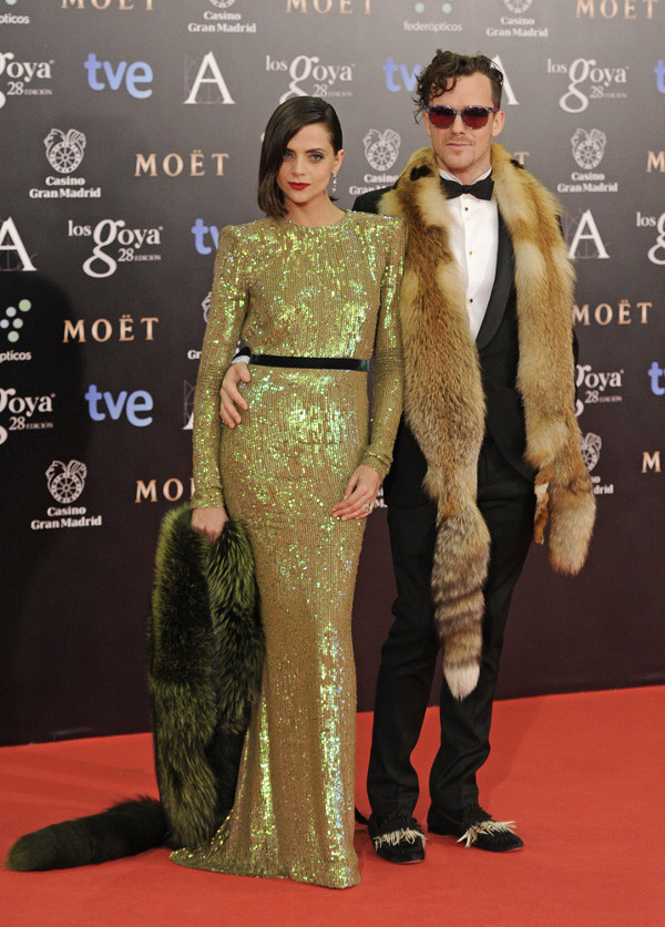 Y a modo de bonus track, os dejo con una de las estampas más frikis de la noche. La protagonizaron Macarena Gómez y su marido.Si quería que hablaran de ellos lo consiguieron. El caso es que el vestido de ella de Lorenzo Caprile con lentejuelas verdes no me disgustó, pero combinado con el excéntrico look de su pareja…¡demasiado! Ojo con sus pieles y sus zapatos con plumas. Muy modernos sí…y el caso es que tiene su punto. ¿Qué os parece?
