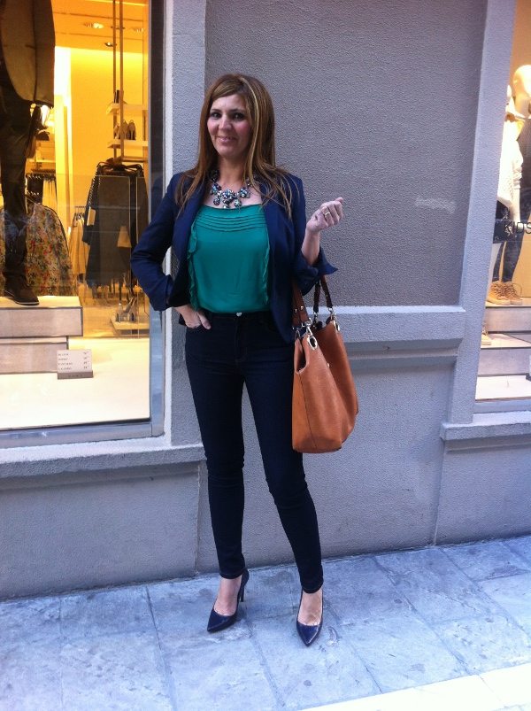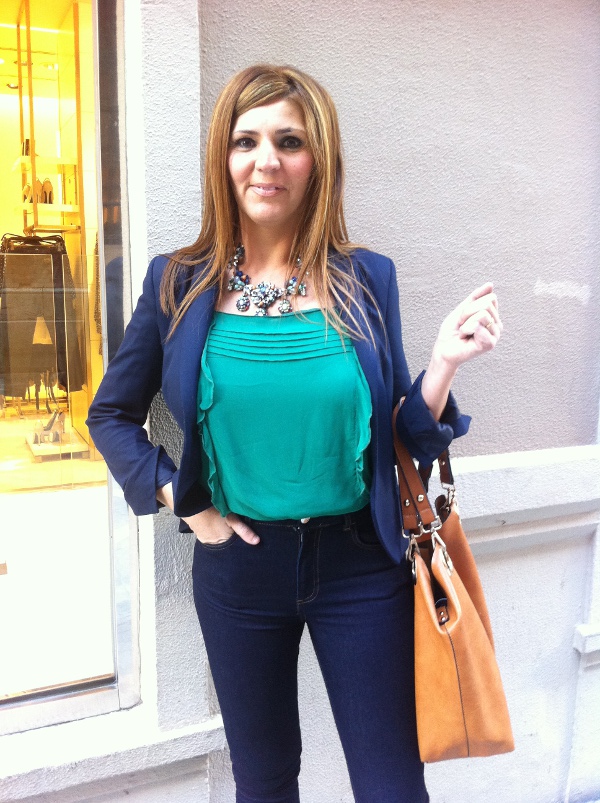 Una temporada más, los collares joya son protagonistas. Se llevan XL, con mucha pedrería y colorido, ideales para realzar los looks primaverales. Personalmente me encanta este complemento (al que suelo recurrir casi a diario) porque te soluciona de un plumazo cualquier estilsimo básico. Un buen collar, con una simple camisa o un vestido de cuello a la caja, aporta la guinda que hace especial un ‘outfit’. Además, son súper versátiles ya que la mayoría sirven tanto para el día como para la noche. Sin duda, un gran invento. Nuestra protagonista de hoy luce un modelo de la nueva colección de Zara. A mi juicio espectacular y muy vistoso. Vanesa García, directora de una tienda de ropa, lo lleva con camisa verde esmeralda, blazer azul marino, vaqueros entubados y stilettos negros. ¿El resultado? Sofisticado y muy estiloso. ¡Os dejo con ella! ¡Hasta mañana!