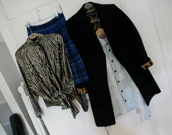 Camisa vintage de su madre (con destellos metalizados), falda de Find De Luxe, abrigo Dolce & Gabbana con los puños de ‘print animal’ -regalo de una amiga- y camisa vaquera de los 80, obsequio de Mario Camino.