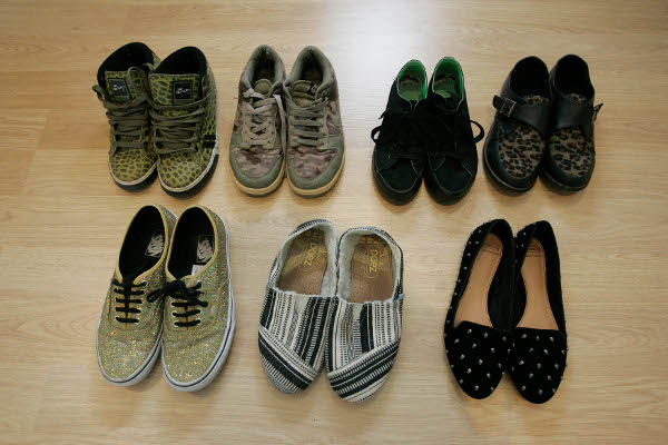 El calzado deportivo es clave en sus ‘outfits’. De Emerica, Vans, Paez, Pull&Bear, mercadillos, Mustang y Nike (las de camuflaje, regalo de un amigo).
