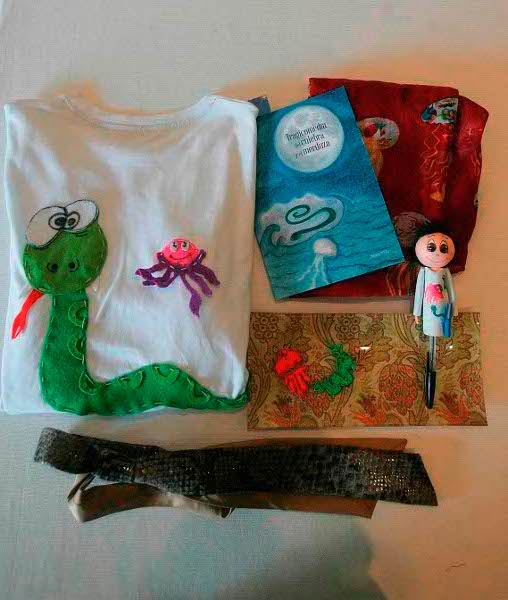 Entre sus prendas más especiales figuran los regalos que les hicieron sus amigos con motivo de su libro ‘Tragicomedia del culebra y el merduza’. Entre ellos, la camiseta que llevó en la presentación, unos broches de fieltro, un pañuelo o una corbata que simula la piel de la culebra.