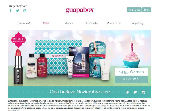 ¡Buenas! Hoy quiero hablaros de una cajita de belleza que está estos días de celebración. Guapabox cumple su primer añito de vida y lo hace con una caja chulísima llena de productos súper útiles para el ritual de belleza diario. ¡Yo ya la tengo y tengo que confesar que me ha encantado! Si el mes pasado se superó con su especial en apoyo al cáncer de mama este mes de noviembre nos vuelve a sorprender con productos de primerísimas marcas -la mayoría en una talla más que aceptable- y un atractivo regalo: la barra labial de Skeyndor en un rojo con matices corales súper favorecedor y una textura ligera que la hace comodísima de llevar. Guapabox está de aniversario “y por eso, nuestra cajita de noviembre contiene todo lo necesario para superar con éxito una buena fiesta. Desde los pies hasta la cabeza, estarás radiante para salir de celebración” como explican desde la propia compañía.
