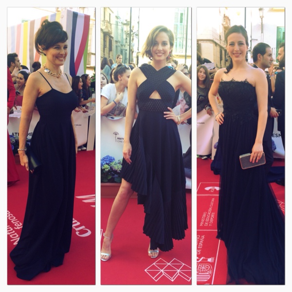 El negro es otro de los grandes clásicos de la alfombra roja. Arriba (de izda a drcha): Silvia Marsó, con vestido de Erikch, Silvia Alonso -muy acertada con un traje asimétrico plisado de Stella McCartney– y Ruth Nuñez, de Pepe Botella. Un gran error el peinado de Ruth, Un moño rococó totalmente pasado de moda que le echaba años encima.