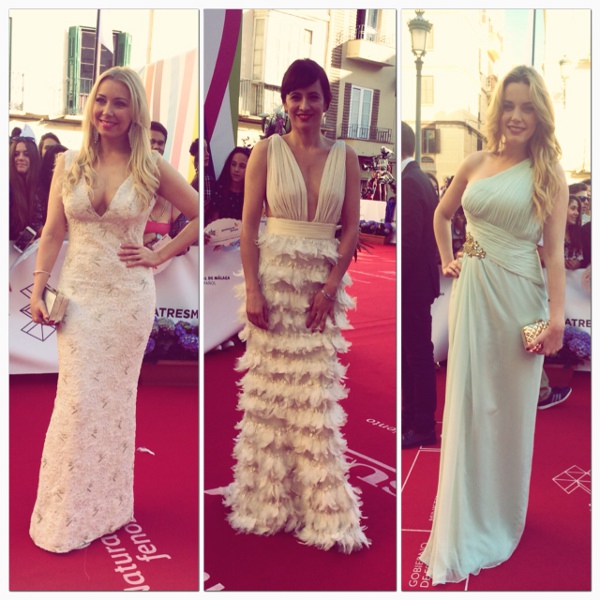 Por ignorar las tendencias y lucir modelos demodé cero favorecedores en el apartado de los fiascos de la noche incluimos (de izda a drcha) a Nazaret Jiménez ( vestida de Alejandro De Miguel), Ana Turpín -con diseño con plumas de Pepe Botella– y a Carolina Bang, que tampoco tuvo su mejor noche con un traje de gasa verde menta de escote asimétrico.