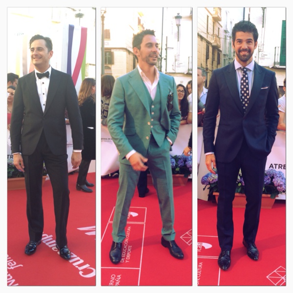 Los más guapos de la gala inaugural: el presentador de la noche, Asier Etxeandia -con traje negro de Brooks Brothers-, Paco Léon, con un original traje verde de Lander Urquijo, y Miguel Ángel Muñoz, de Anglomanía.