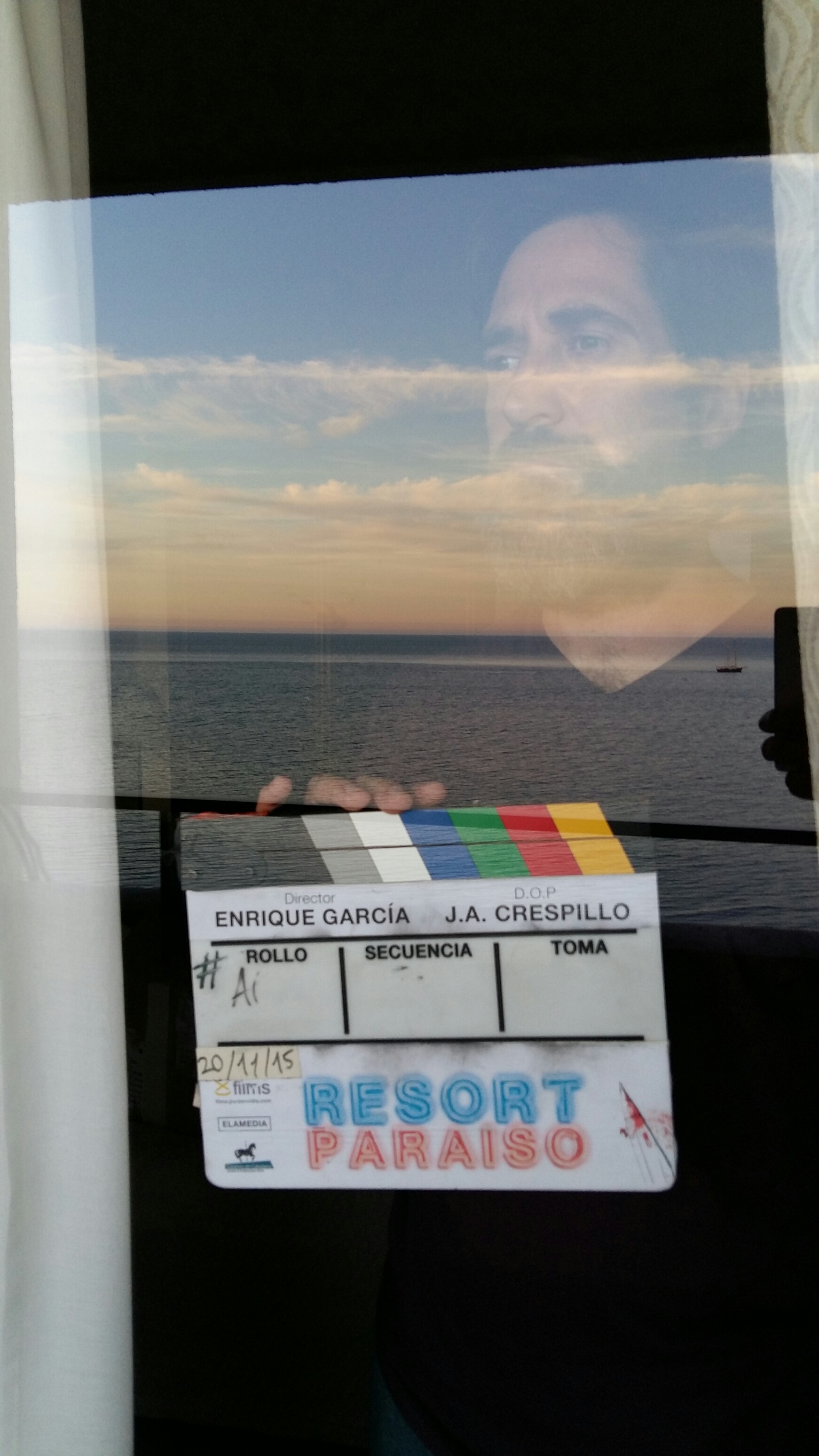 Quinta jornada de rodaje en Resort Paraíso. Hoy amanece un día calmado, tranquilo, de faena controlada… calma chicha. Pero es todo tan frágil como lo puede ser un rodaje con un plan de rodaje repleto y complicado pero medido hasta su último minuto. Toca encender focos, aplicar maquillajes, elegir vestuarios, afinar el sonido y confeccionar un escenario para completar las secuencias previstas.