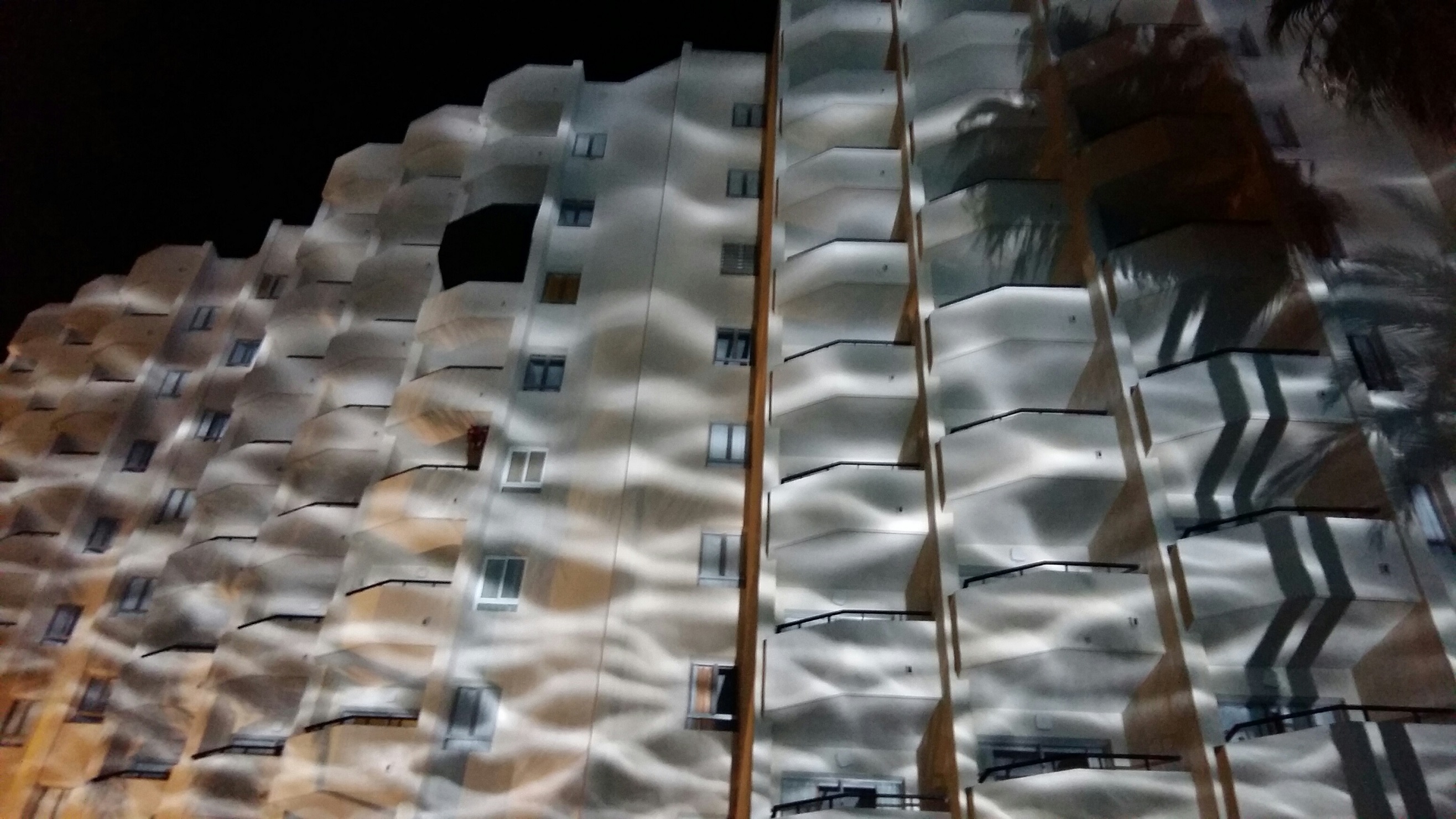 Tras finalizar el plan del día, toca visitar los sets del día siguiente y de la próxima semana. Y una de las sorpresas de la noche es lo mágico y precioso que nos han mostrado hoy nuestro hotel protagonista bañado por la luz de la noche reflejada sobre la piscina. Un hipnotizador espejismo del que volvemos sabiendo lo que este escenario significa en nuestra historia.