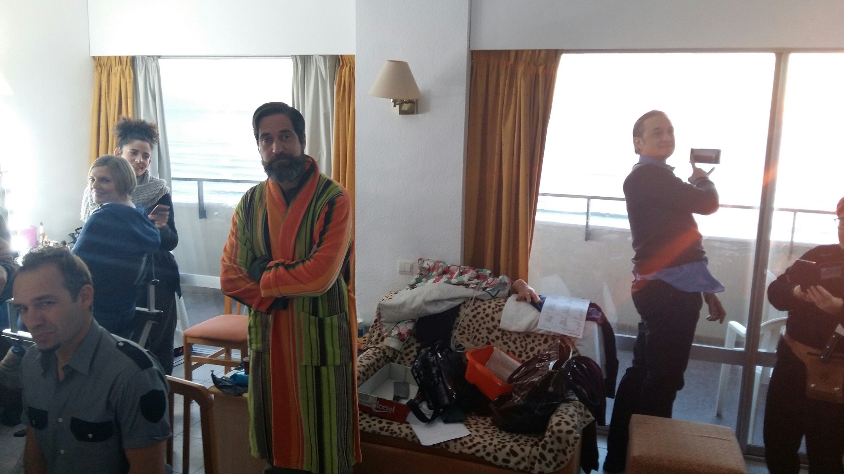 La primera alegría la encuentro a primera hora de la mañana visitando el camerino de vestuario y peluquería. Encuadrar en una misma foto a Héctor Medina, Virginia DeMorata, Rafa Castillo-Romero y a Aníbal Soto (que empezaba hoy en el Resort), ha sido una de las experiencias más bonitas al poder hacer realidad un reparto con el que soñaba desde los primeros borradores de la historia. Y aquí están.