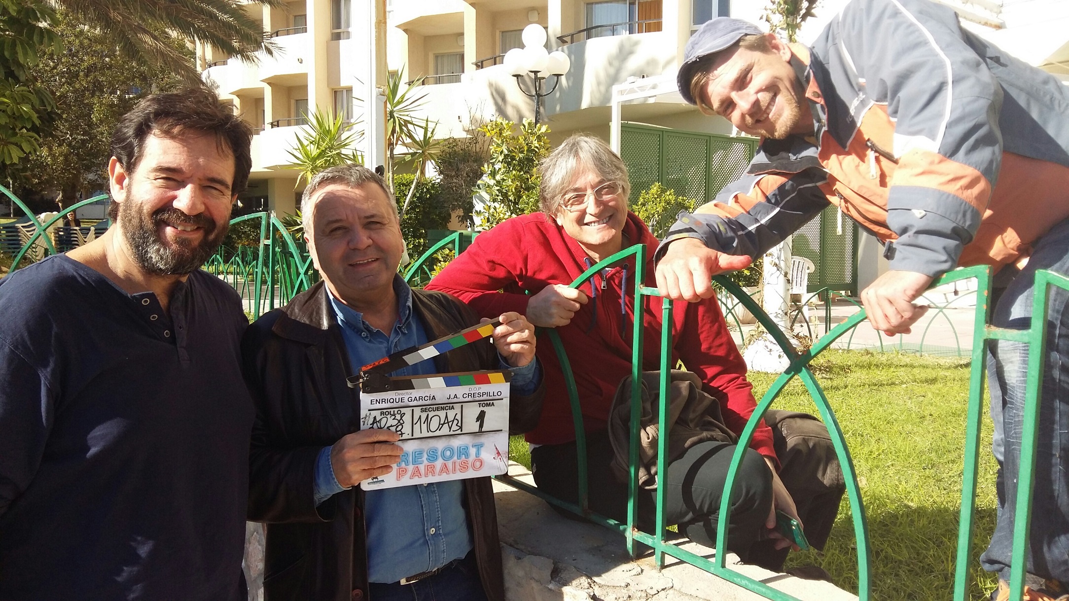 Hoy hemos recibido de nuevo a Paco Lomeña, de LoaSur, uno de los productores de ‘Resort Paraíso’ y alma del audiovisual malagueño durante más de 20 años (muchísimos profesionales han salido de Loasur, actores y técnicos, entre otros muchos, Aníbal Soto, que comenzó su carrera en televisión con ‘Plaza Alta’). Paco fue fundamental para darle a la producción el empujón definitivo para hacer esta película y convertir el proyecto en realidad. Hacía tiempo que buscábamos la oportunidad de trabajar juntos y por fin lo hemos conseguido.