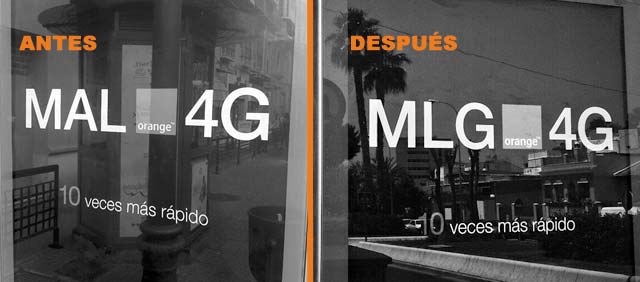 Un día de finales de junio Málaga aparecía plagada de carteles de la nueva campaña de Orange: que si 4G, que si 10 veces más rápido… Pero, ¡oh! ¡Cuidado! ¿Qué leían los posibles clientes?