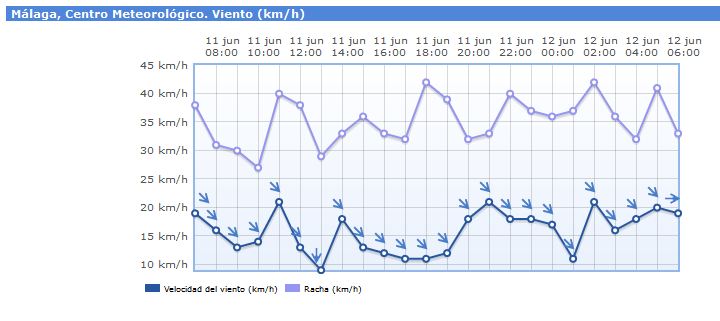 Asi estaremos hasta mas o menos hasta el viernes, que espero que de nuevo el terral empieze a soplar en la capital malagueña.