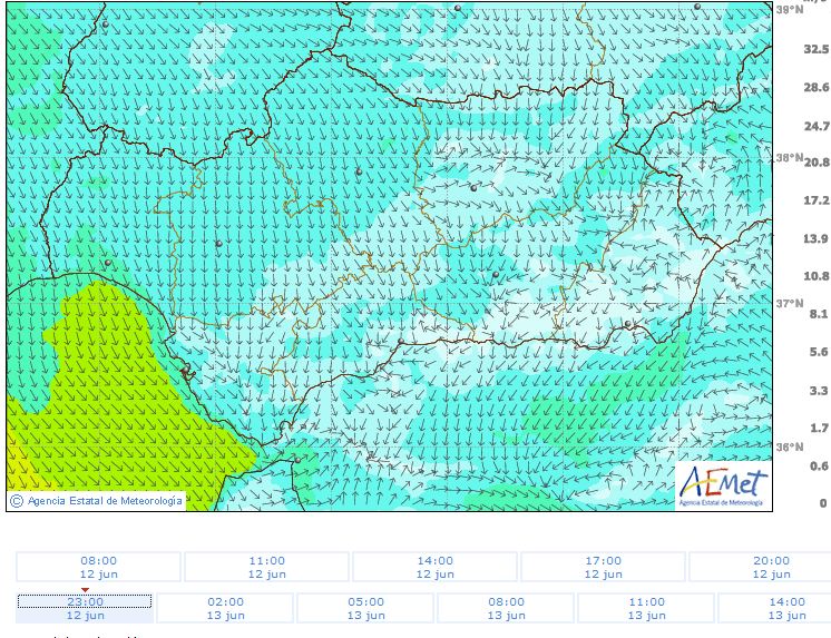 Durante el dia de hoy, el viento de terral ira aminando, dando paso al levante a ultima hora. fuente aemet