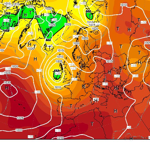 El terral a partir de hoy lunes, nos ira abandonando. El levante tomara protagonismo y de nuevo podemos tener nieblas o nubes bajas costeras. Pero como dice la canción del título del post de hoy, hay posibilidad de que de nuevo a partir del miércoles o el jueves vuelva nuestro amigo el terral. He mirado los mapas por encima y me da que puede ser asi. De nuevo se acercaria una vaguada originada por una borrasca en las Islas Británicas. Fuente GFS