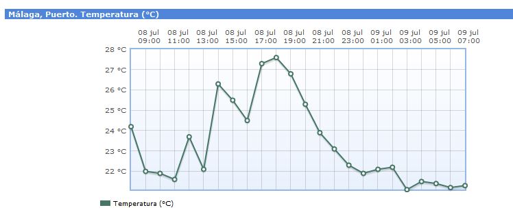 El domingo registramos una mínima en Torre de Benagalbón de 19 grados y una máxima de 25 grados. En la zona de Teatinos se llego a los 32 grados por una reboza de terral a las cinco de la tarde, mientras en el Puerto no pasaban de 26 grados.