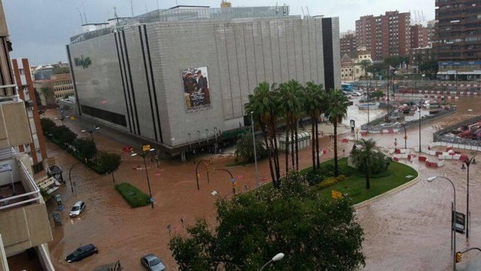 En mi centro de trabajo, Bahía Málaga, desde la puerta pude tomar esta foto. En esta zona el agua hacía menos daño.