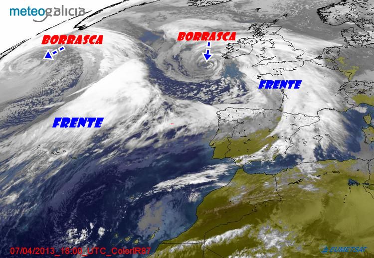En esta imagen que guarde ayer del satelite eumetsat  podéis ver las borrascas afectara al noroeste peninsular.