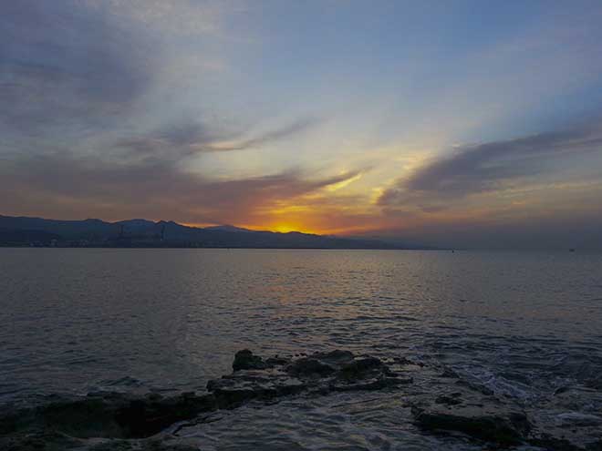 Bueno amigos son las siete menos cinco de la mañana y ya tenemos casi en directo y para los dormilones el amanecer de Málaga. Os pongo primero el mio desde la terraza, ya que Lui aun no me lo ha mandado.
