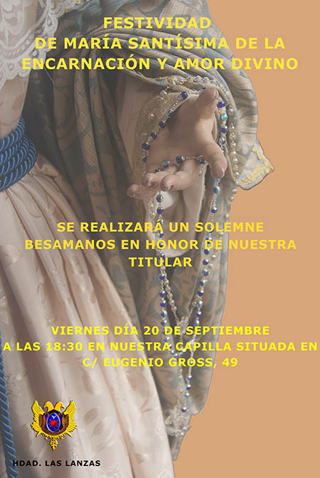 Hola de nuevo amigos, os paso esta información que me ha facilitado mi amigo Sebas. La Hermandad de las Lanzas celebra la festividad de María Santísima de la Encarnación y Amor Divino.