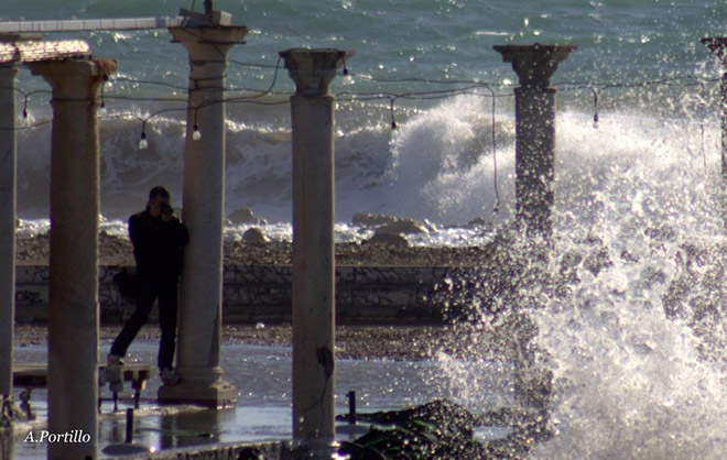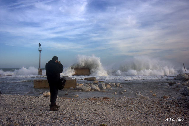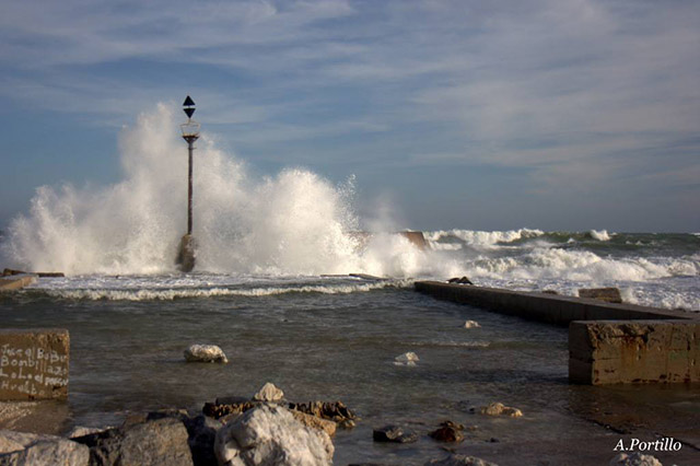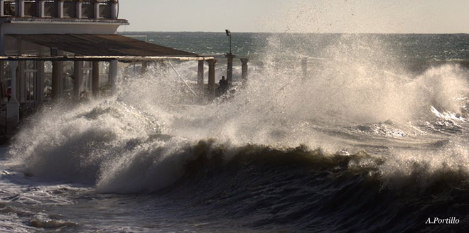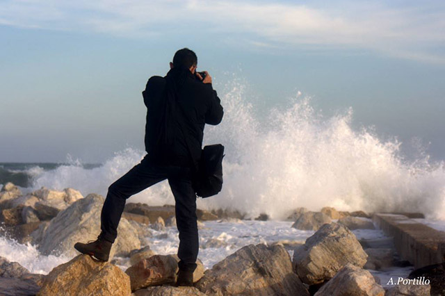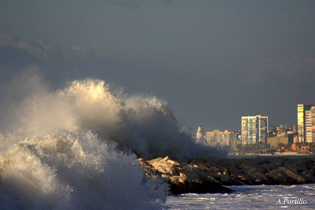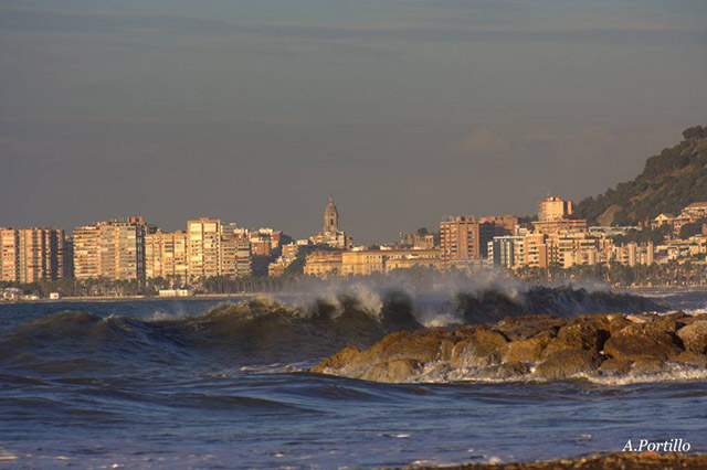 Pero lo mejor vendría del pedazo de fotógrafo Antonio Portillo, que me cazo fotografiando las olas. Os paso primero unas fotos de la zona de los espigones de pedregalejo, donde Antonio estuvo una horas antes fotografiando las olas. Una pasada.