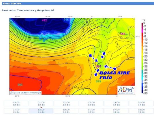 El cambio del viento a levante, unido a este embosamiento de aire frío, puede traer esta “pequeña inestabilidad”, que de producirse, seria mas probable en la zona comprendida desde Málaga hasta Almería. Ya veremos que pasa amigos. Asi es la meteo, lo mismo esta tarde cuando actulicen los mapas la vuelven a poner.