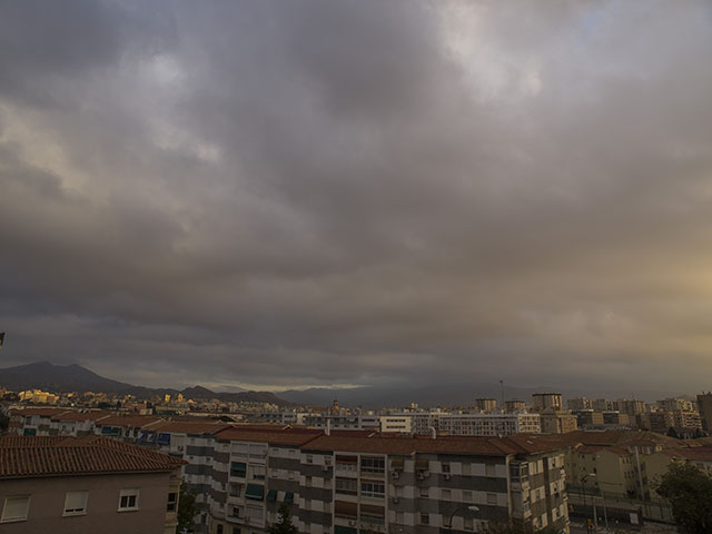 Ahora mismo cuando son las nueve y media de la mañana los cielos están nubosos, esto se debe a que el levante ha entrado hace un rato. Seguirá con nosotros tanto hoy como mañana domingo, soplando entre moderado y fuerte en el Mar de Alboran y Esdtrecho. Esta foto que os pongo es de hace pocos minutos.