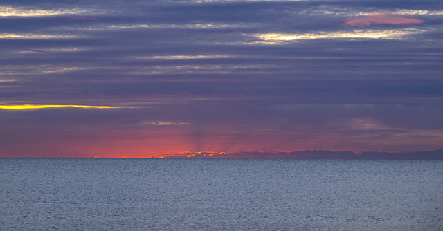 Pero durarón poco los cielos despejados, ya que sobre las tres de nuevo las nubes tipo lenticularis y altocumulus fueron los protagonistas. Estas nubes dejaron un impresionante atardecer que fotografié en la Playa del Chanquete.
