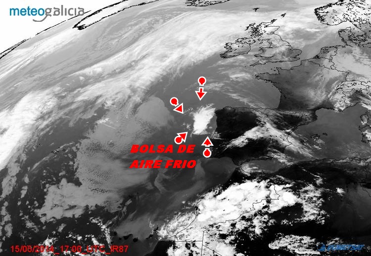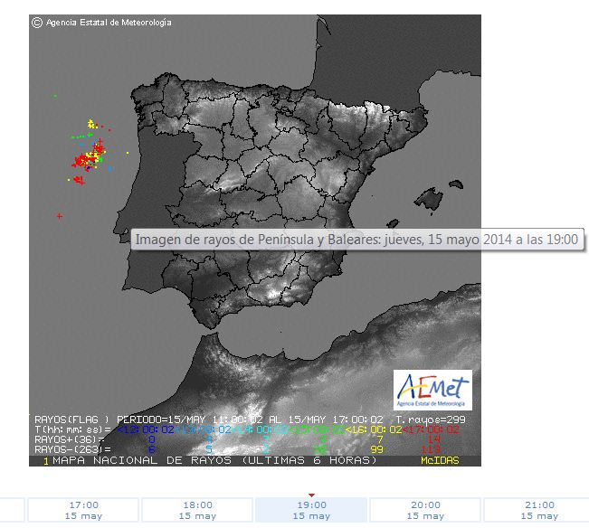 Estas otras dos imágenes las guarde ayer, una del satelite eumetsat y la otra del mapa de rayos, podéis ver claramente donde estaba ayer la bolsa de aire frío.