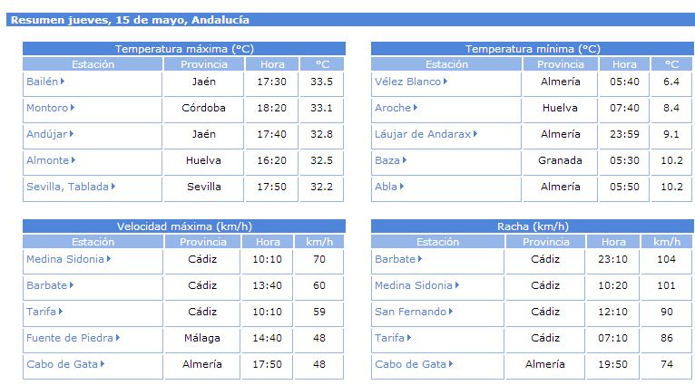 Y poco mas que contar, os paso los datos mas destacados de ayer, las rachas de viento fueron las protagonistas en la provincia Gaditana.