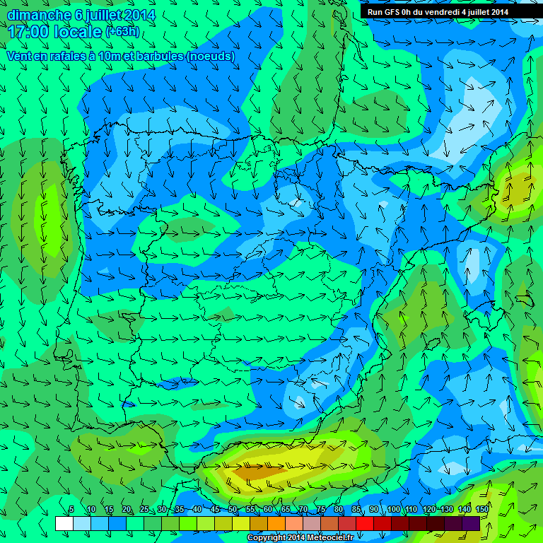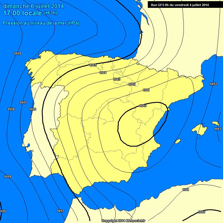 La previsión del domingo es la mas complicada para el litoral mediterráneo, ya que según los modelos el poniente soplaría fuerte de nuevo a partir del mediodía o primeras horas de la tarde. Esto se traduciría en terral en la capital malagueña y zonas expuesta a este viento. En las demás zonas seria el poniente el protagonista. Este cambio se deberá al paso de un frente frío por el norte peninsular, que dejara lluvias y tormentas en estas zonas. Si el frente se adelanta, el terral y el poniente llegaría antes al litoral mediterráneo, si se retrasa seria por la tarde cuando tomaría protagonismo . En este mapa que os paso, se ve claramente como se forma esa baja al llegar al mediterráneo.