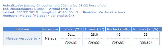 Pero la maxima de Andalucía y de España la dio de nuevo Coín con 39,4 grados, os paso los datos.