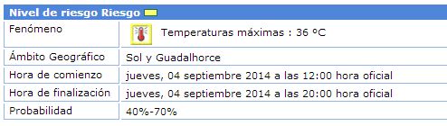 De nuevo la aemet activa el aviso amarillo. Si os fijáis el umbral es de 36. Aunque segun las zonas se puede superar.