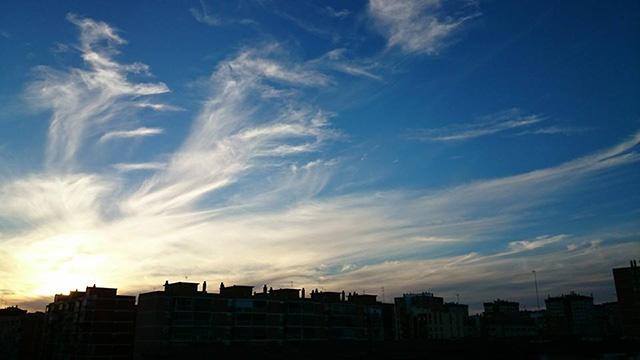 Los cielos por la mañana amanecieron despejados, pero a ultima hora de la tarde aparecieron cirrus, yo los fotografié desde la terraza.