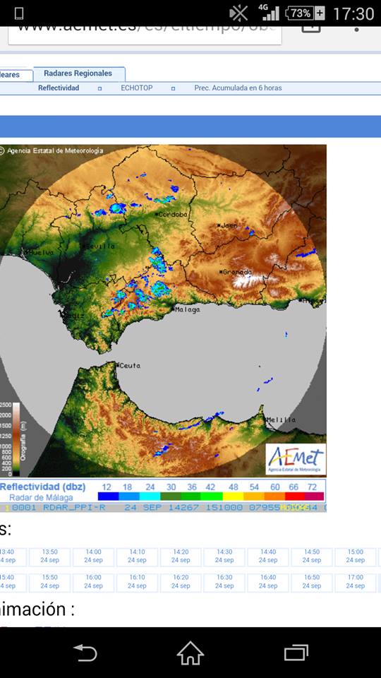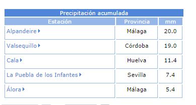 Nuevamente Málaga Capital da la maxima de España con mas de 30 grados ( 30.8) y el pueblo malagueño de Alpandeire registro 20 litros.